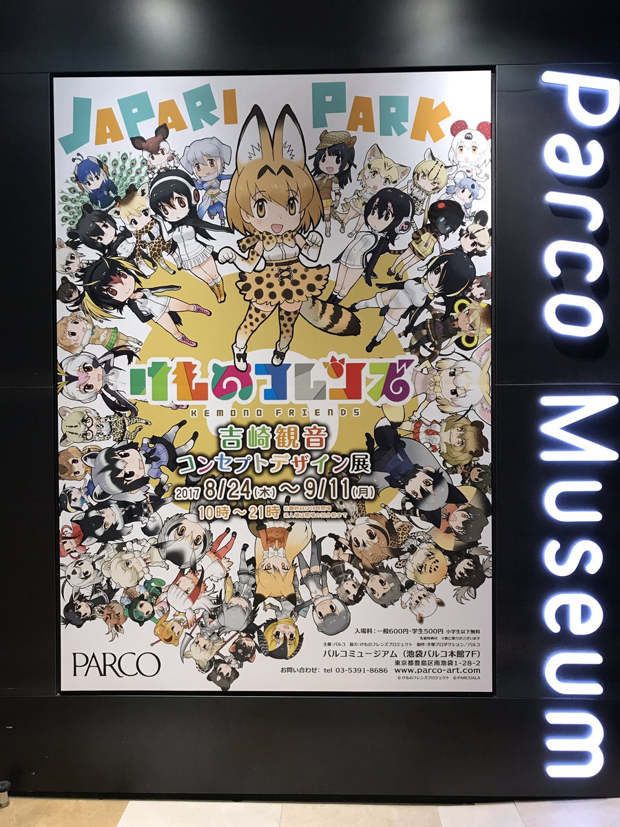 「けものフレンズ 吉崎観音コンセプトデザイン展」12:00よりフリー入場となっておりますが、物販コーナー混雑のため、人数調整しながらのご案内とさせていただいております。申し訳ございません。#けものフレンズ #けもフレ #パルコミュージアム