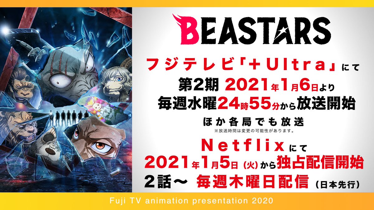 ⚡️フジテレビアニメラインナップ発表会2020配信中⚡️https://t.co/hPf9IohSMC#bstanime #BEASTARS #plusultra #ノイタミナ pic.twitter.com/A3PVuAtY3Q
