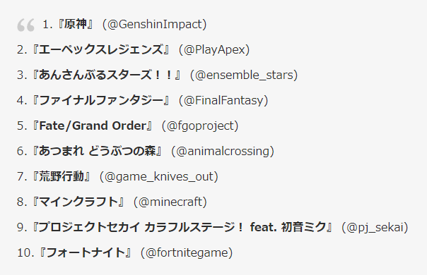 【浮上】Twitter社が2021年のゲーム関連ツイートを総括、最も話題になったタイトルは『原神』https://t.co/J2CfQo2yEt