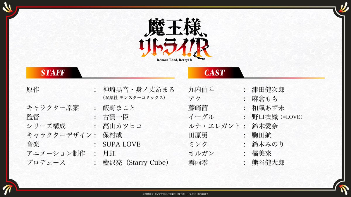— TVアニメ「魔王様、リトライ!R」公式 (@maousama_anime) March 15, 2024